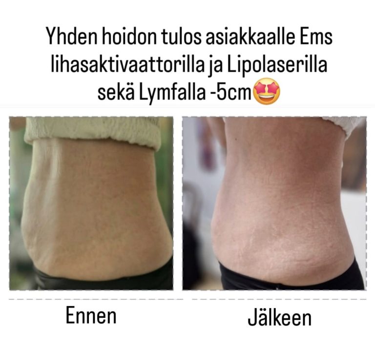 Cryo Lipolyysi rasvasolujen jäädytys, Lipolaser ja Lymfa yhdistelmähoito ja EMS lihasaktivaattori, Lipolaser ja Lymfa yhdistelmähoito. Näillä hoidoilla etenkin on saatu asiakkaille upeita muutoksia. Hifu vartalohoidolla pystymme kiinteyttämään vartalon löysää ihoa.