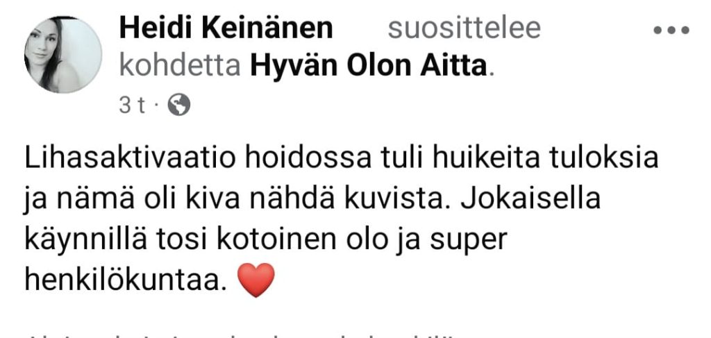 Beauty Highlights -blogin Mia kävi Hyvän Olon Aitassa VARTALON LAITEHOIDOSSA.